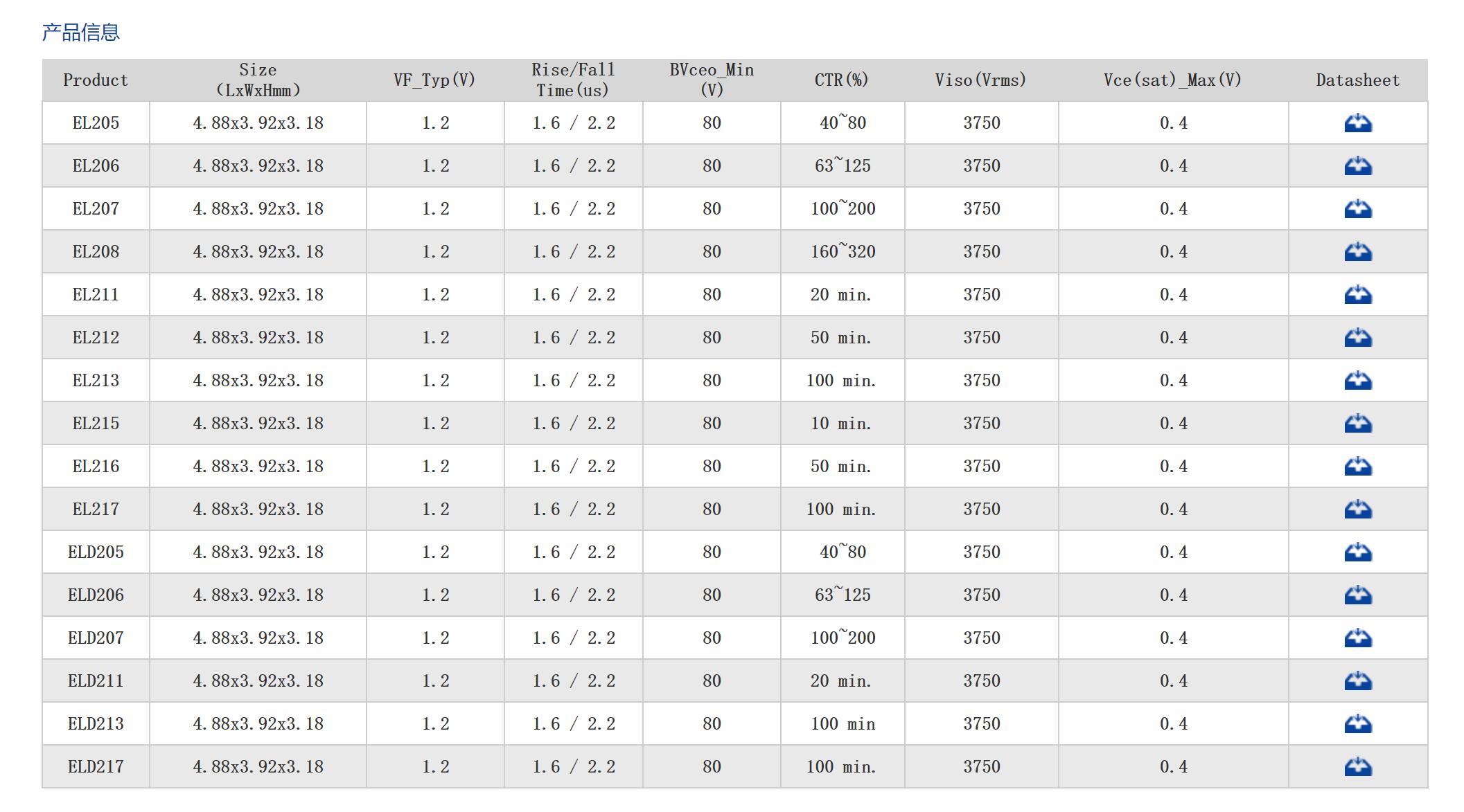 常用光耦EL20-EL21-ELD系列